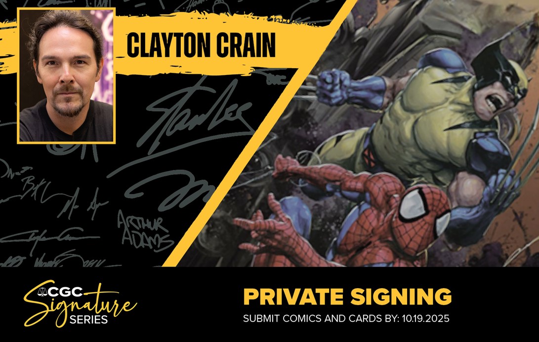 Crain will also be signing at the CGC booth during San Diego Comic-Con! This rare appearance marks the only opportunity to get his signature through CGC outside of our in-house signing — making it a must for collectors. And there’s more! Anyone who gets a collectible signed by Clayton at SDCC will score an exclusive Clayton Crain Gem Mint 10 pin, available only at this event! More information about this event will be announced soon.