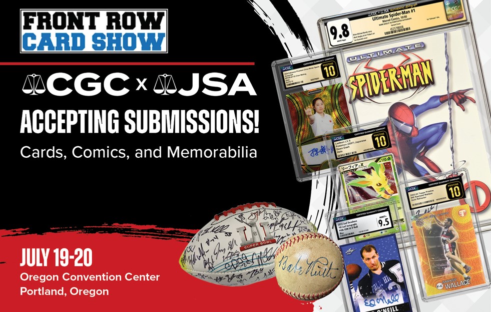 CGC® and JSA® are excited to be accepting submissions of cards, comics and memorabilia at Front Row Card Show Portland, being held at the Oregon Convention Center in Portland, Oregon, on July 19-20, 2025.