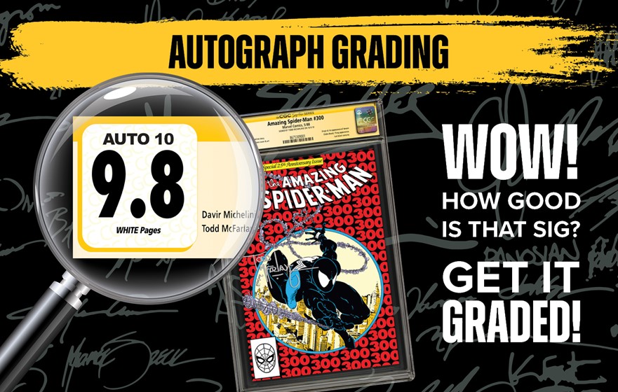 Now, CGC Signature Series is excited to offer collectors a new option to even further elevate their autographed collectibles — autograph grading! That’s right, signatures get their own grade based on quality, and the autograph grade is printed in the CGC grade box with the comic’s grade.