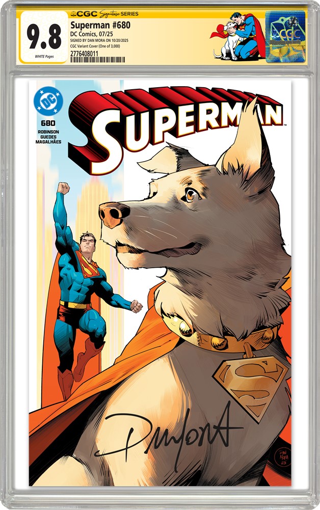 Certified Guaranty Company® (CGC®) is soaring into San Diego Comic-Con with an exclusive variant cover for Superman #680, available only at the CGC booths July 24-27, 2025. The striking cover by fan-favorite artist Dan Mora features Superman alongside his loyal canine companion Krypto, and will be available in limited quantities at the event.