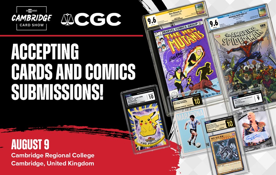 Certified Guaranty Company® (CGC®) is excited to be accepting submissions of comics and cards at the Cambridge Card Show, taking place at Cambridge Regional College in Cambridge on August 9, 2025.