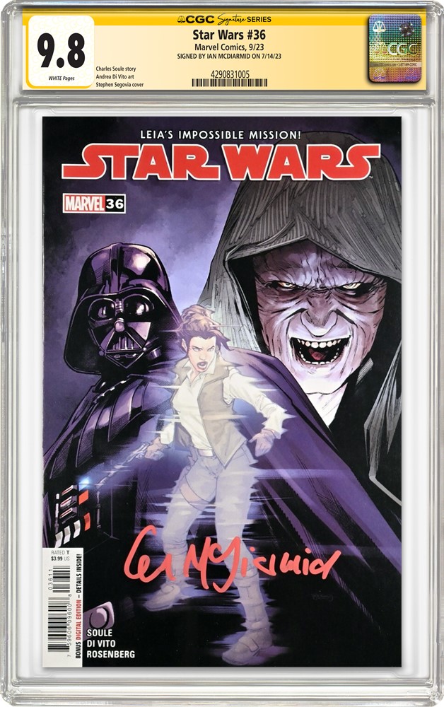 The CGC Comics Signing fee with a character name for Ian McDiarmid is $245 per item and includes: