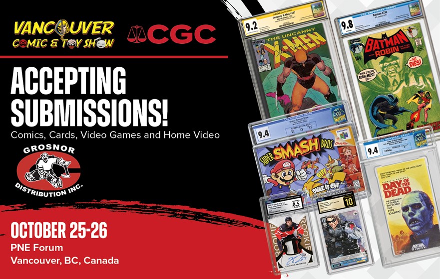 Certified Guaranty Company® (CGC®) is excited to be accepting submissions through Grosnor Distribution at the Vancouver Comic & Toy Show at the PNE Forum, in Vancouver, British Columbia, Canada, on October 25-26, 2025.
