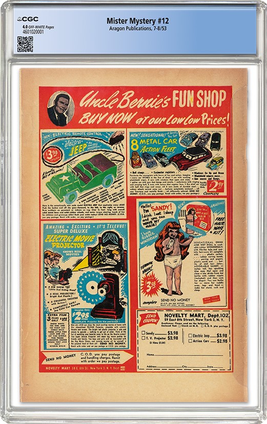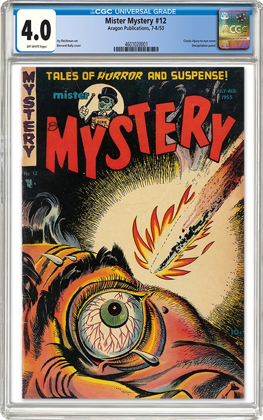 Featured in the All Hallows’ Eve: Horror Pulp Magazines and Comics Showcase Auction on October 23, 2025, is a Mister Mystery #12 graded CGC 4.0 (lot 75130).