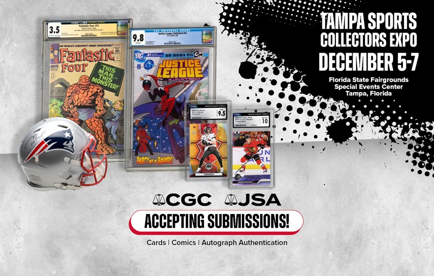 CGC® and JSA® are excited to be accepting submissions of cards, comics and memorabilia at the Tampa Sports Collectors Expo, being held at the Florida State Fairgrounds Special Events Center in Tampa, Florida, on December 5-7, 2025.