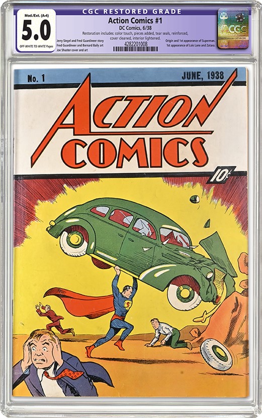 - a Detective Comics #1 graded CGC 7.0 Restored (lot 100), with an estimate of $50,000 to $70,000