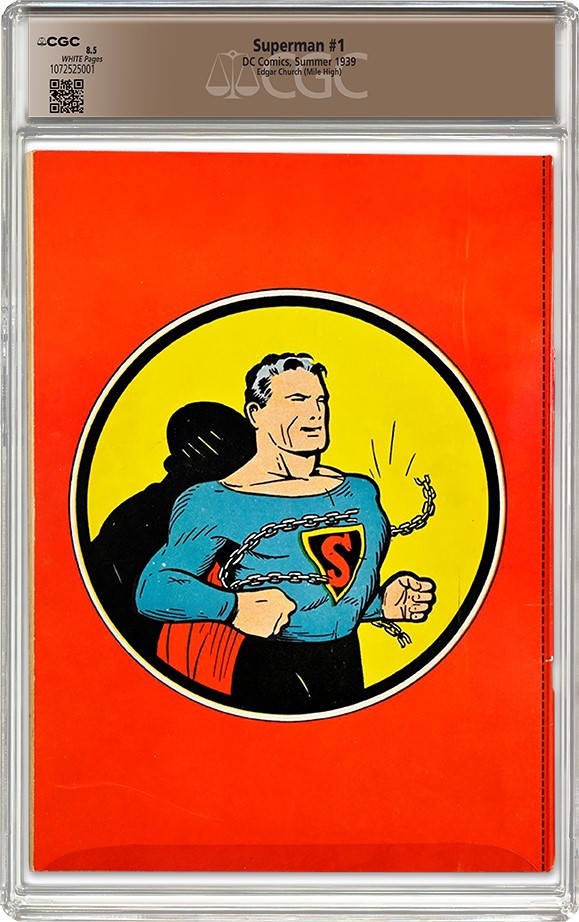 Its partner in the deal, the Mile High pedigree Superman #1 graded CGC 8.5, carries equal historical weight. Long revered for their exceptional preservation, Mile High copies are considered the gold standard of Golden Age comics. As one of the finest surviving examples of the book that launched the superhero genre, the Superman #1 anchors the transaction with both provenance and prestige.