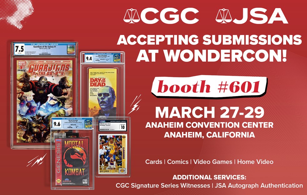 CGC® and JSA® are excited to be accepting submissions of comics, magazines, pulps, cards, video games, home video collectibles and autographed memorabilia at WonderCon at the Anaheim Convention Center, in Anaheim, California, on March 27-29, 2026!