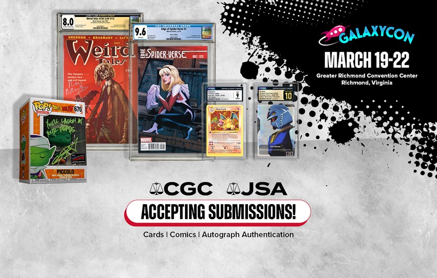 CGC® and JSA® are excited to be accepting submissions at GalaxyCon Richmond at the Greater Richmond Convention Center in Richmond, Virginia, on March 19-22, 2026.