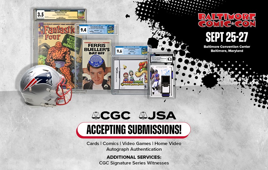 CGC® and JSA® are excited to announce they are accepting submissions and offering on-site comic book grading as the Official Authentication and Grading Service of the Baltimore Comic-Con, at the Baltimore Convention Center in Baltimore, Maryland, on September 25-27, 2026.