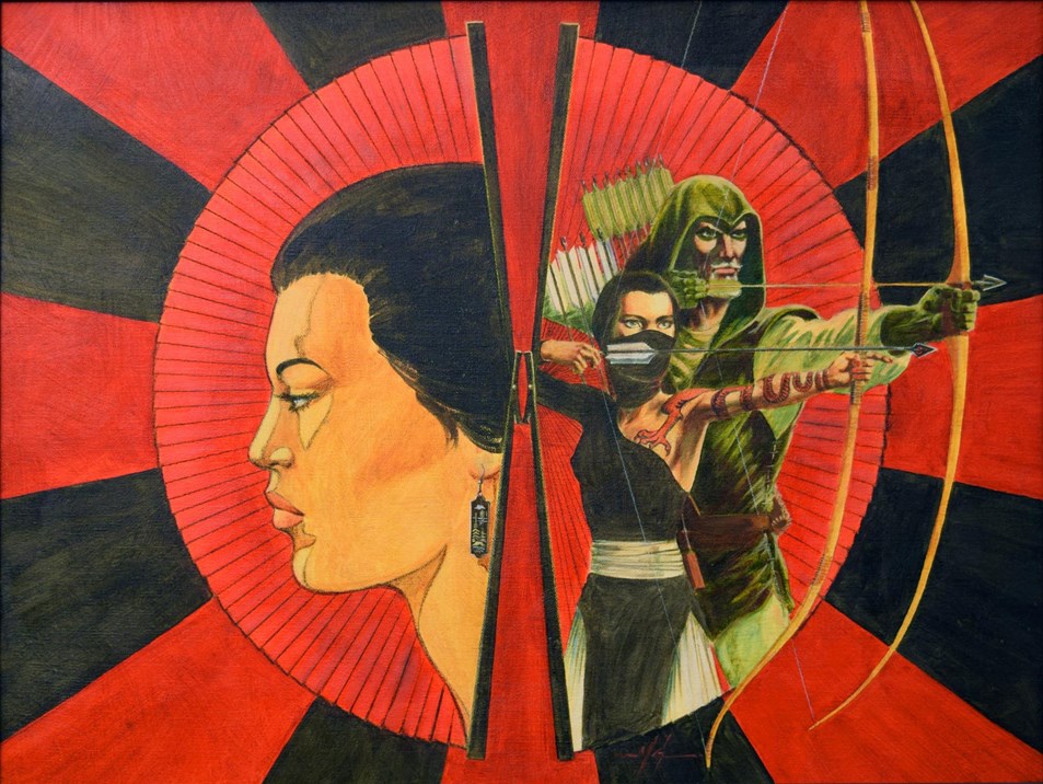 • Mike Grell Green Arrow: The Longbow Hunters #2 Wraparound Cover--one of only three covers for this landmark series that reestablished Green Arrow post-Crisis; the 1st cover featuring Green Arrow and Shado together