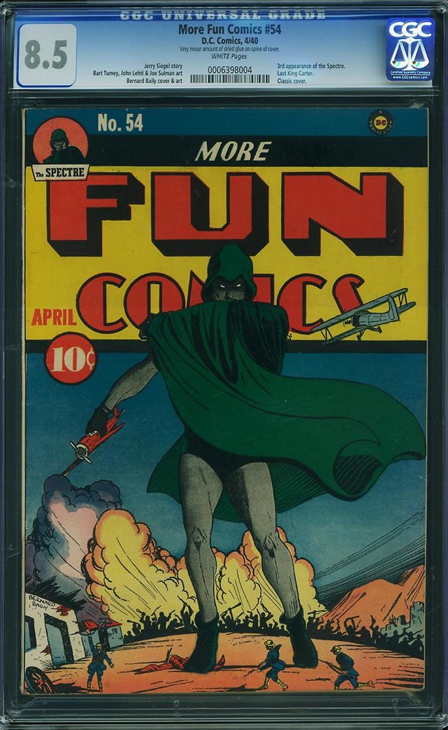• More Fun Comics #54 (classic Spectre cover--one of the best of the entire Golden Age) CGC 8.5