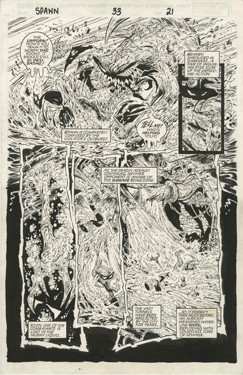 • Todd McFarlane Spawn #33 page featuring a killer Spawn/Violator battle in the sewers--McFarlane Spawn art is extremely rare as the artist has kept virtually all of his work on the character so this is a unique opportunity