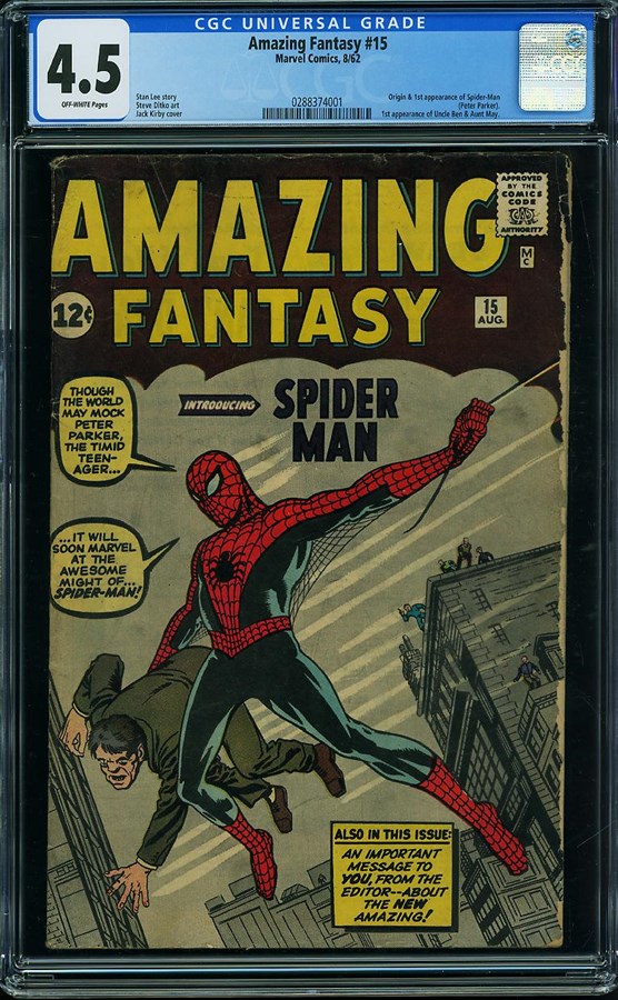 • Amazing Fantasy #15 (1st Spider-Man) CGC 4.5